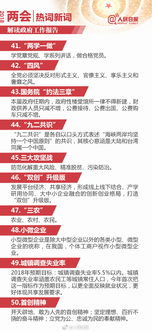 在公務(wù)員考試常識部分是很多考生最為頭疼的部分,而其題量所占的比重充分表明其在考試中的重要地位。常識則需要不斷積累,不斷溫故才能夠更牢固的掌握。今天載了人民日報微博分享的2018政府工作報告90個熱詞解釋,供考生學習。