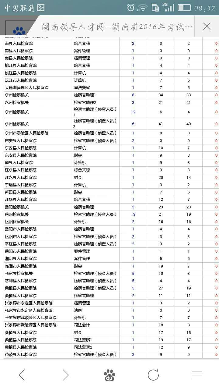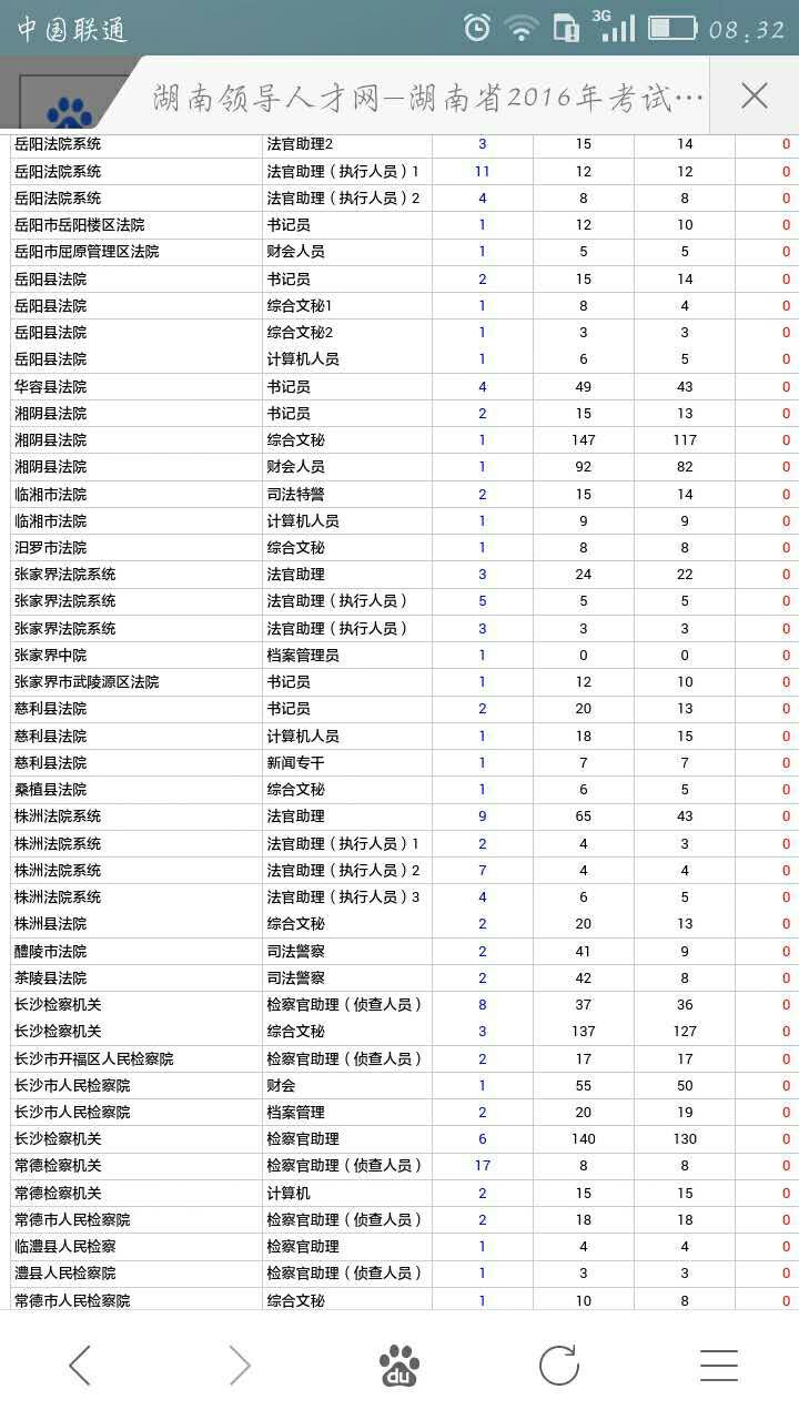 截止到27日17時2016湖南法檢報名人數(shù)統(tǒng)計張家界各職位報考人數(shù)匯總