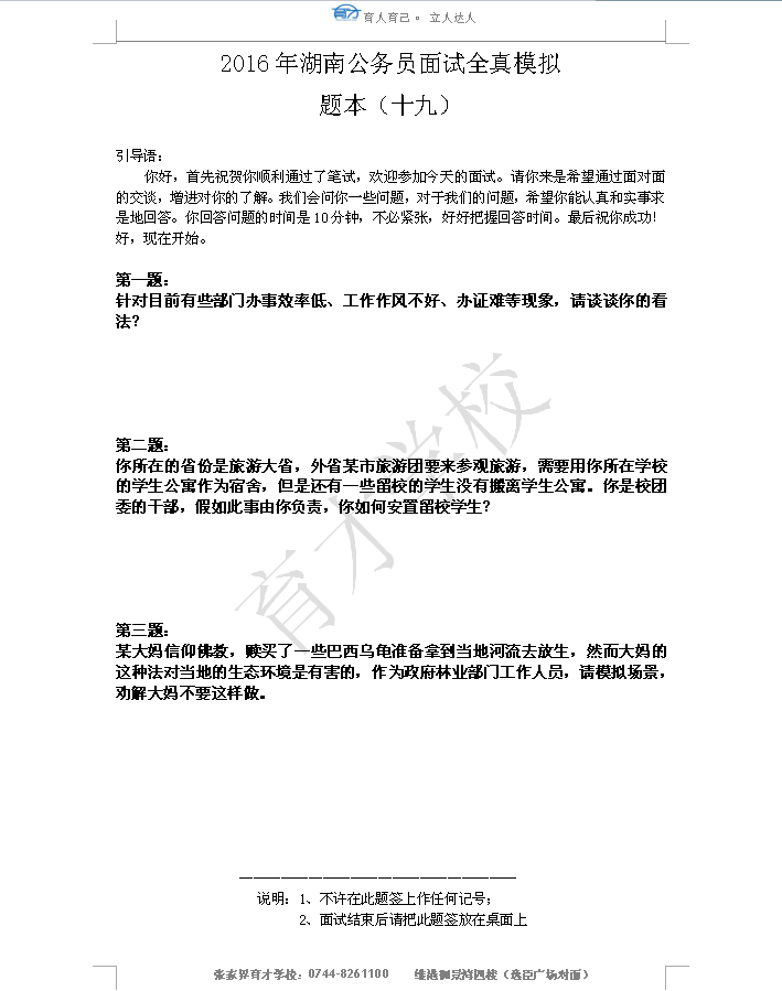 張家界育才學(xué)校公務(wù)員面試預(yù)測題精準(zhǔn)命中!