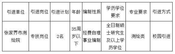 2018年張家界市國土資源局(測繪院)公開引進(jìn)急需緊缺專業(yè)人才公告(校園引進(jìn))