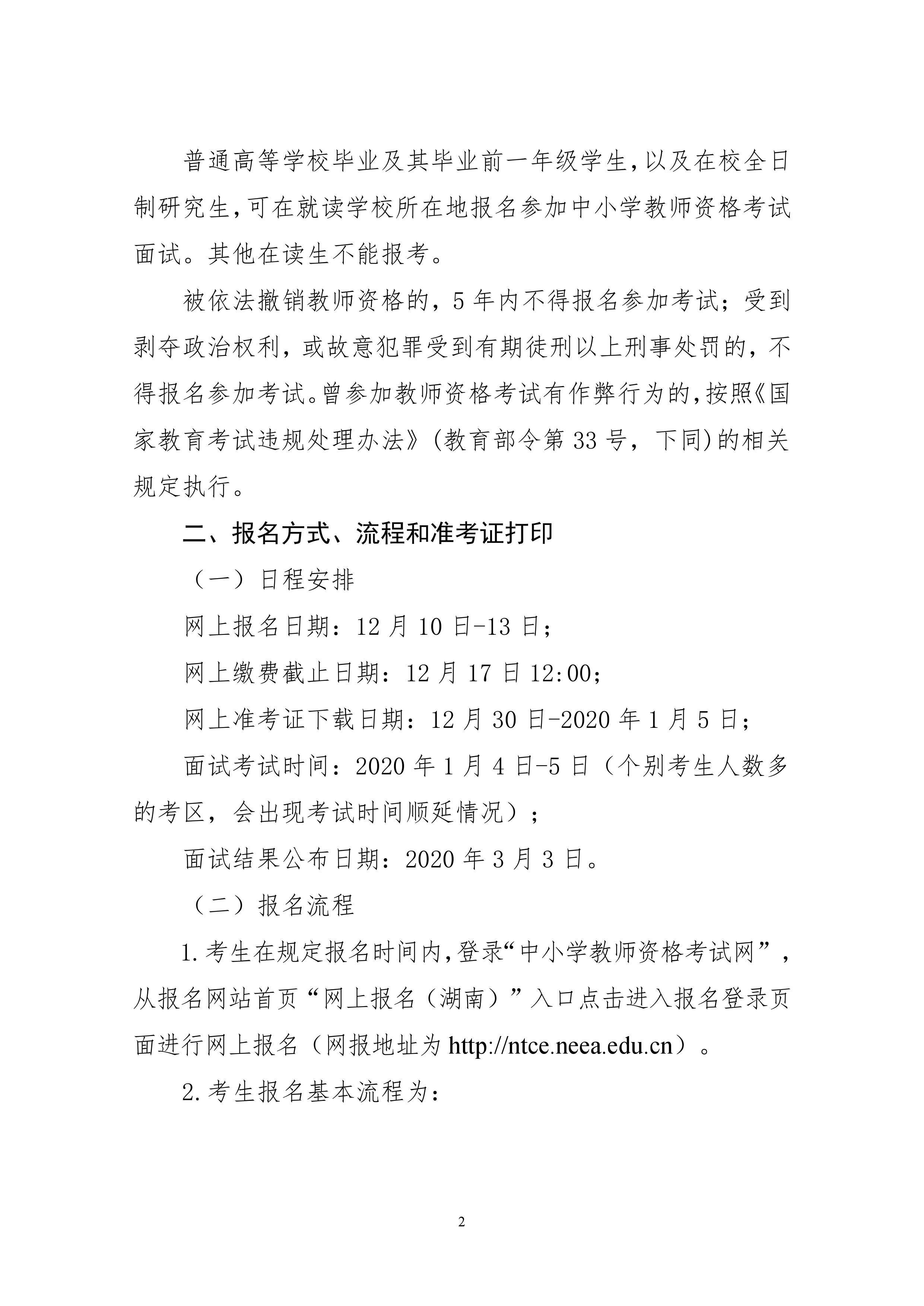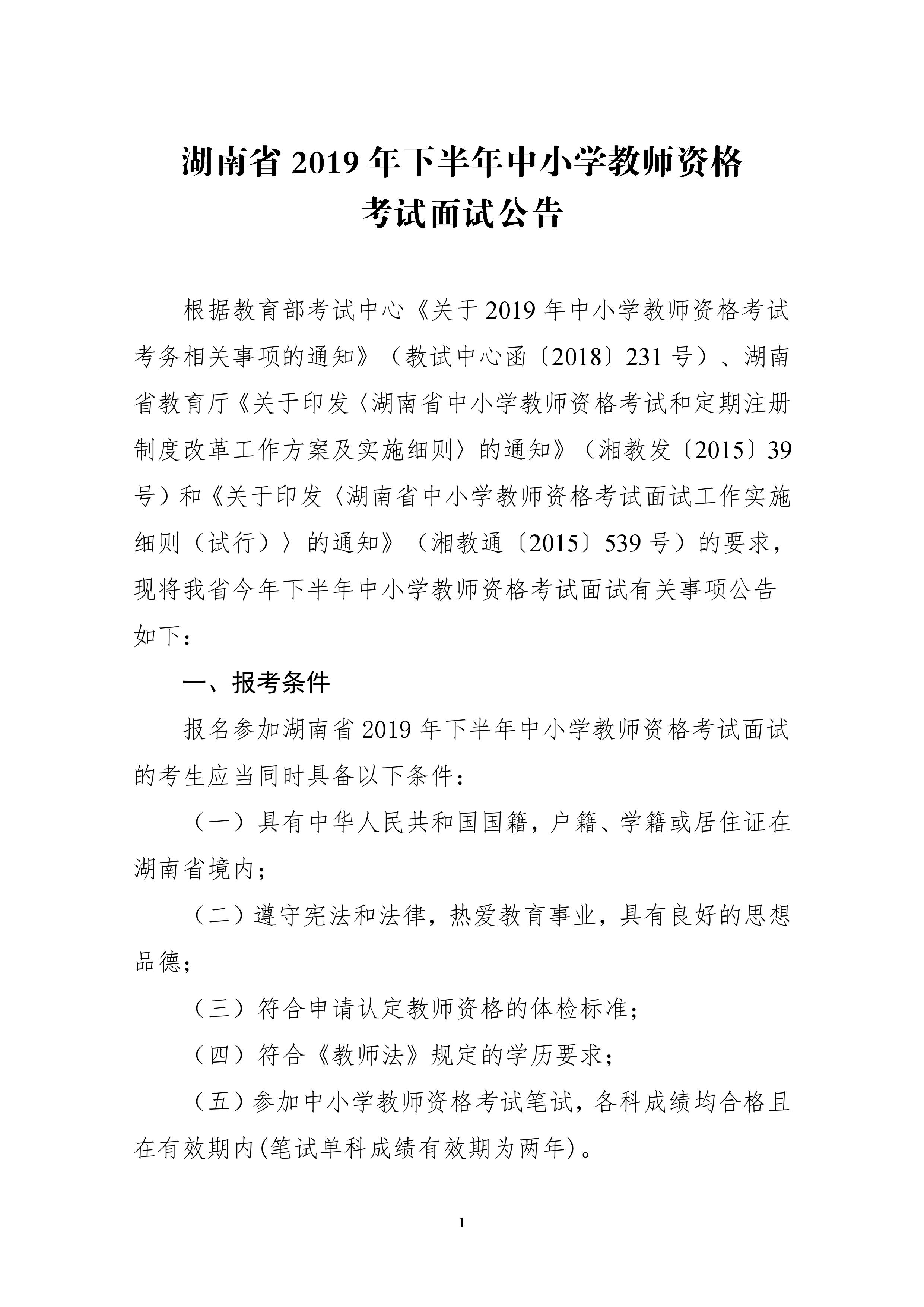 湖南省2019年下半年中小學(xué)教師資格面試公告