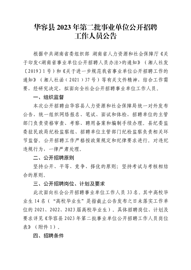 華容縣2023年第二批事業(yè)單位公開招聘工作人員33名公告